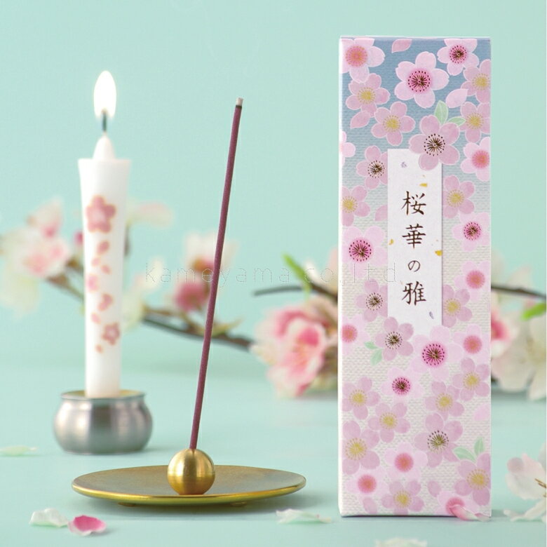 【送料無料】進物 桜華の雅 桐箱入り 絵ローソク 線香 桜と白檀の香り カメヤマ 日本製 お墓参り/お彼岸/お盆/進物/お供え/御供/喪中お見舞い/喪中御見舞/お彼岸/法要にも