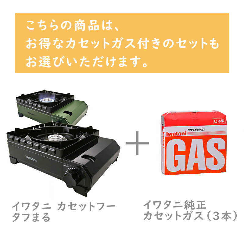 メーカー希望小売価格はメーカーサイトに基づいて掲載しています。※上記リンクをクリックするとメーカーサイトのキャプチャ画像をご確認いただけます。▼▼在庫状況についてこちらの商品は、自社倉庫在庫状況を元に販売させていただいております。在庫データは定期的に最新の情報をもとに更新しておりますが、在庫切れが発生した場合には、改めてご連絡させていただきます。 ▼▼商品の発送目安について納期の異なる商品、またはお取り寄せ商品と一緒にご注文をされた場合には、商品入荷後・納期が後ろの商品と合わせて発送させていただきます。 ▼▼プレートは別売イワタニの別売りのプレートを使用すると多彩なメニューをお楽しみ頂けます。 ・たこ焼きプレートは別売となります。 ・たこ焼きプレート CB-A-TKPのみ使用できます。別途ご購入くださいませ。 ・焼き肉プレートは別売となります。 ・焼肉プレート (L) CB-A-YPL フッ素加工のみ使用できます。別途ご購入くださいませ。 ・鉄板焼プレートは別売となります。 ・鉄板焼プレート CB-A-TPPのみ使用できます。別途ご購入くださいませ。 ・網焼プレートは別売となります。 ・網焼プレート CB-A-AMPのみ使用できます。別途ご購入くださいませ。 商品名カセットフー タフまる CB-ODX-1本体サイズ幅341×奥行283×高さ129mm商品重量約2.4kgカラー[本体] オリーブ/[キャリングケース] カーキ[本体] ブラック/[キャリングケース] ブラック材質[本体] 鋼板、[トッププレート] ホーロー用鋼板、[ごとく] ホーロー用鋼板、[バーナー] 鋼板 (ステンレス)、[点火つまみ] ABS樹脂、[収納ケース] PE最大発熱量3.3kW (2,800kcal/h)連続燃焼時間約75分(気温20〜25℃のとき強火連続燃焼にてカセットボンベを使い切るまでの実測値)点火方式圧電点火方式安全装置圧力感知安全装置、容器装着安全装置、容器受口加圧機構容器着脱方式誤装着が起きない「マグネット着脱式」ボンベ加温機構火力を落とすことなくカセットボンベのガスを最後まで使い切るヒートパネル搭載生産国日本 届け出事業者:岩谷産業株式会社PSマークの種類:PSLPG登録検査機関名称:JIA 対応プレート 網焼プレートCB-A-AMP 焼肉プレート (S)CB-A-YPS 焼肉プレート (L) フッ素加工CB-A-YPL 3,100円 (税込) 1,900円 (税込) 2,580円 (税込) 鉄板焼プレートCB-A-TPP たこ焼きプレートCB-A-TKP 焼肉グリルCB-A-YKG 3,590円 (税込) 2,840円 (税込) 3,820円 (税込) ホットサンドグリルCB-P-HSG 2,490円 (税込)※写真はイメージです。※使用しているプレート・鍋・具材等は付属しておりません。 ※写真はイメージです。※使用しているプレート・鍋・具材等は付属しておりません。 ※写真はイメージです。※使用しているプレート・鍋・具材等は付属しておりません。 カラー