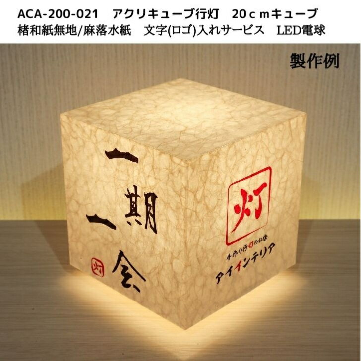 ACA200-021-1 アクリキューブ行灯 20cmキューブ楮和紙無地/麻落水紙 1面文字(ロゴ)入れサービス LED電球ホテル・和風旅館・飲食店・リラクゼーション施設などにお薦め!オリジナル行灯をリーズナブルに製作致します。