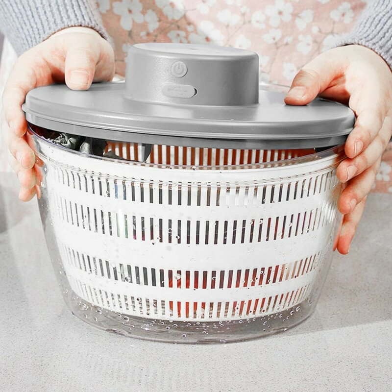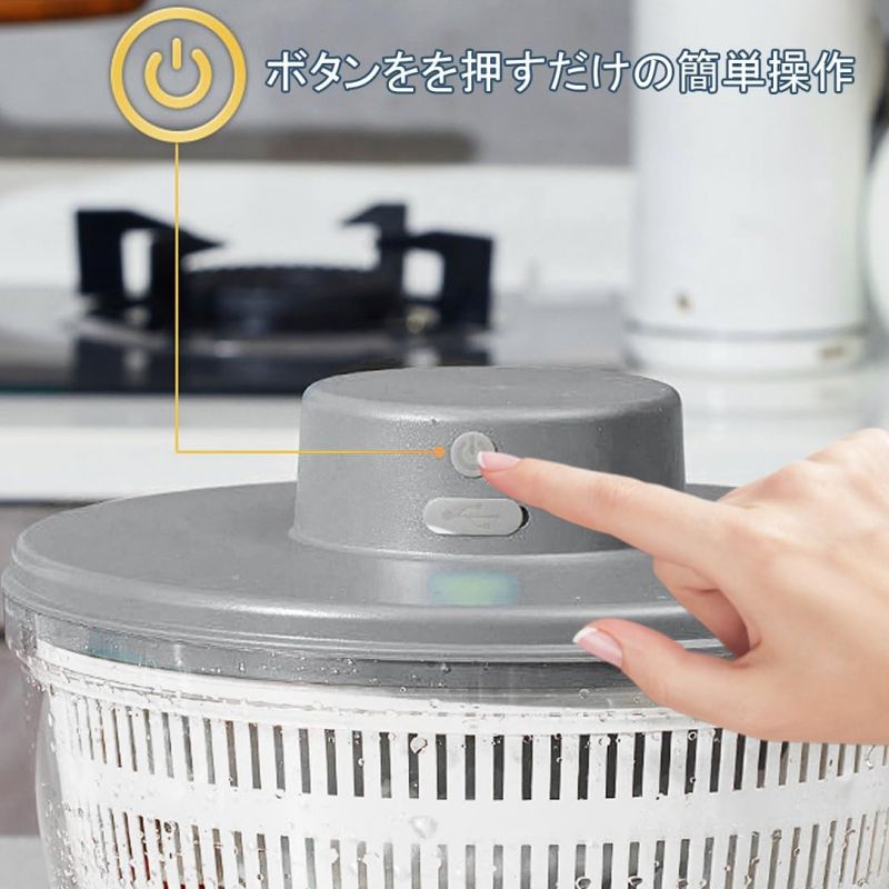 電動サラダスピナー サラダスピナー 野菜スピナー 野菜水切り器 電動 水切りザル 高速水切り 野菜 果物 USB充電式 キッチンツール 水滴かご 4L大容量 調理器具 大容量 果物と野菜の脱水器 高温に堪える耐える