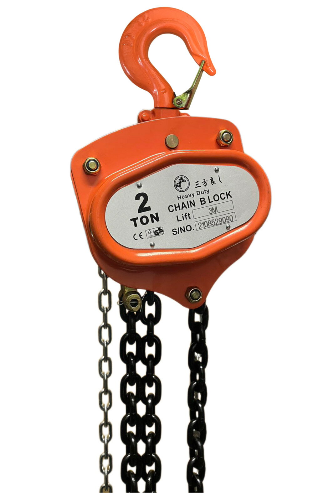 ◆チェーンブロック0.25t~3.0t各タイプはこちら ・国際標準化機構ISO9001:2008認証工場で生産された国際基準CE&TVU&GS規格製品です。 ●防錆性と耐食性に優れたハンドチェーンです。 雨や荷重衝撃などあらゆるショックに強い耐久性の特殊鋼ロードチェーンを装備しております。 主要な軸受にベアリングを使用、滑らかな操作が可能 ※定格荷重:2.0ton ※揚程(m):3.0 ※手動力(N):365 ※本体重量:18.5kg ※フック間最小距離G(mm):414 ※作動荷重:3.0ton