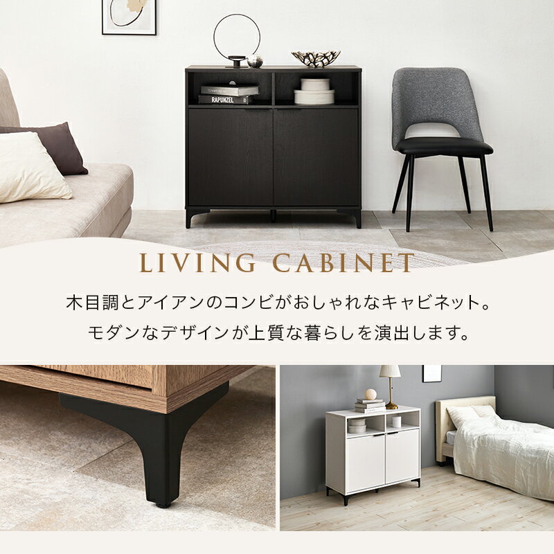 キャビネット RCC-1524 幅90cm 木目調 アイアン 扉収納 大容量 コード穴付き