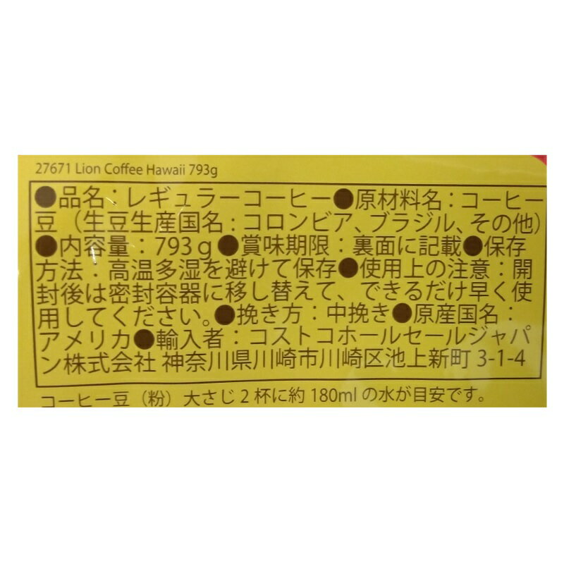 【2袋セット】(ライオンコーヒー カフェハワイ ミディアムダークロースト 793g×2袋)粉 コーヒー ハワイ LION 27671