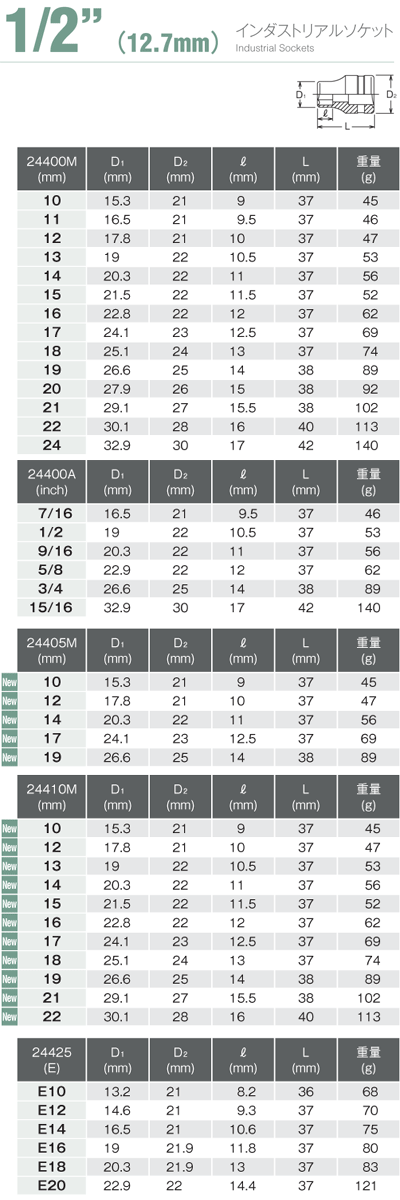 繰り返し作業する工場の組立ライン等でナットランナータイプのレンチ「自動ネジ締め付け機」を使い、締めたり緩めたりする時に威力を発揮する薄型ソケットです。インパクトレンチ用よりもコンパクトな設計、DIY用電動ドライバーなどにも使用できます。表面処理は「パーカー処理」と言われる処理です。薄くて均一な表面、防触効果があります。インダストリアルソケットシリーズ組立ラインで使用されるオイルパルスレンチ※1やナットランナー※2を用いた締付けロボッ卜等に最適な動力工具用ソケット群です。ソケット類は一般のインパクトソケットでは肉厚で使用できない狭い箇所でも対応できるよう基本設計をハンドソケットの寸法とし、また同じ種類のボルト/ナットの締付を繰り返す作業を考慮し、耐摩耗性を向上させるべく熟処理をハンドソケットより高めに設定しています。※1オイパルスレンチ・・・エアモーターの回転によりパルスユニット内部で油圧パルスを発生させアンビルを駆動する動力工具。エアモーターの回転によリハンマーを叩くインパクトレンチより振動/騒音が小さく、締付け精度にも優れる。※2ナットランナー・・・電動/エアモーターの駆動を減速させアンビルを駆動する動力工具。慣性や衝撃に頼らない駆動方式のため、モーター出力の高度な制御により高精度な締付けが可能。コーケンブランド 株式会社山下工業研究所(山下工研 YAMA-SHITA KoKen)製品 ソケットレンチは「MADE IN JAPAN」と刻印し、100%日本製であることを表示しています。カテゴリー;DIY作業工具ハンドツール
