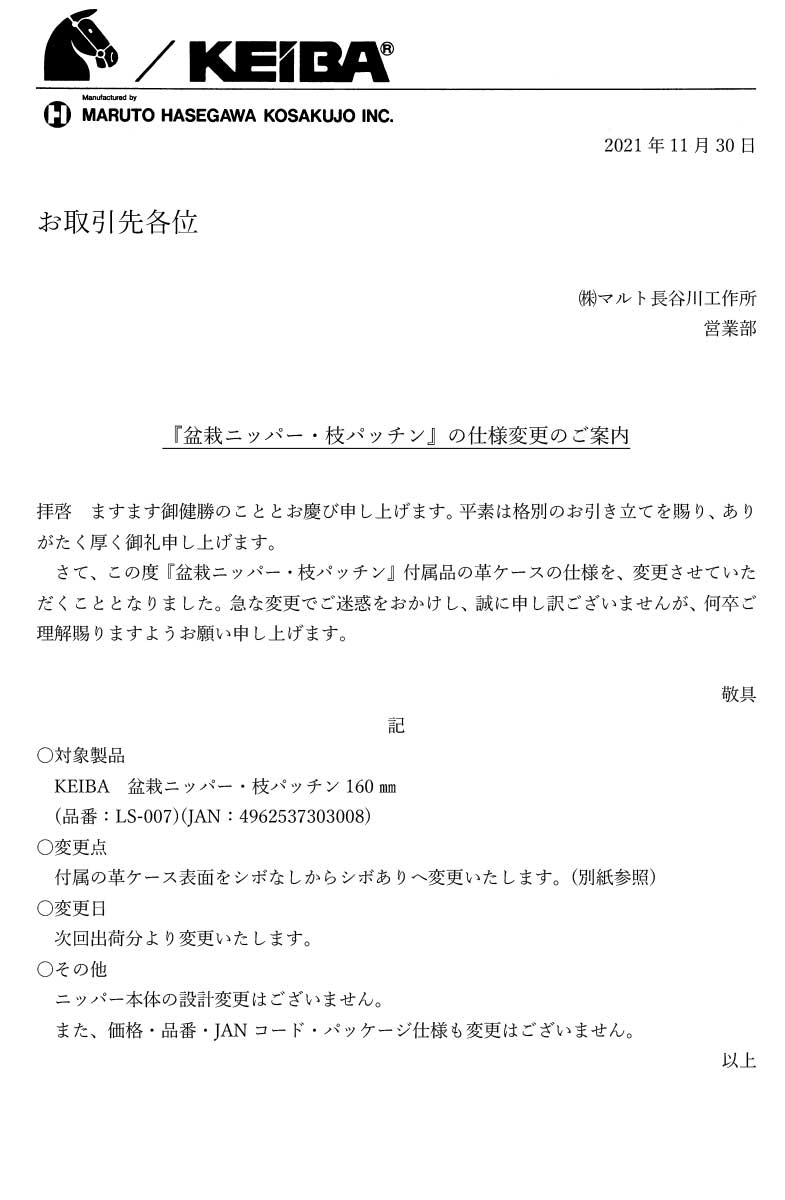 在庫僅少 KEIBA LS007 ガーデンツール 盆栽ニッパー 枝パッチン 160mm ケイバ マルト長谷川工作所