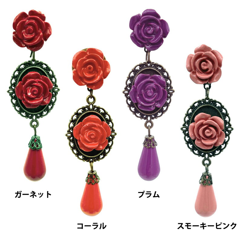 王道の薔薇×涙型モチーフがクラシカルでかわいいピアス。 様々な曲種の衣装に合わせやすい! 踊りの邪魔にならないちょうどいい大きさで、普段使いもできます♪ カラバリ豊富で群舞にも◎ ■サイズ :H70mm×W22mm ■スペイン製 ■ピアス仕様(イヤリング不可) ※こちらの商品は店頭と在庫を共有しておりますので、完売の際はご容赦ください。 ※お客様の閲覧環境により、実物のカラーが若干異なって見える場合がございます。 ※入荷時期により、パーツの色味が多少異なる場合がございます。また、ハンドメイドのため1つ1つデザインやかたちが若干異なる場合がございます。