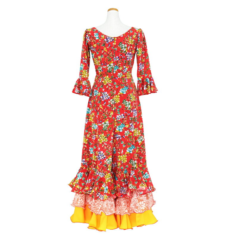 ■商品説明■ 初心者さんにもおすすめな、たっぷり広がるAラインのワンピース。 ワイヤーフリルが舞台映えするふんわりシルエット。袖はアバニコやマントンなどバイレ用品を使っても邪魔にならない5分袖で、二の腕もしっかりカバーします。 シージョとの組み合わせも抜群なラウンドネックは首回りをスッキリ見せてくれる効果も! ■素材■ コチーボ、ニットレース ■サイズ■ 詳しくは下記サイズ表をご参照ください。 ■ご注意■ ※お客様の閲覧環境により、画像と実物の色味が異なって見える場合がございます。また素材の入荷時期により、若干色味が異なる場合もございます。予めご了承ください ※店頭販売と在庫を共有しておりますので、完売の際はご容赦ください。