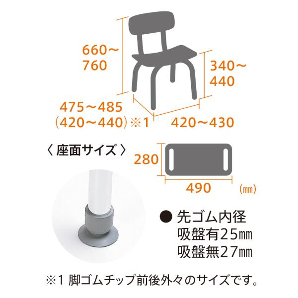「バスベンチ」は、座面左右に握り手がついて、体を支えることができるシャワーベンチです。背もたれ付タイプは、比較的姿勢を保てる方にお勧めします。※左右に姿勢が崩れやすい方は肘掛のついたタイプをご検討ください。 ●組立式。高さ5段階調節可能です。 ●専用の吸盤が4個付属しております。 【カラー】ホワイト 【サイズ】幅49×奥行48×高さ66〜76cm(5段階調節) 座面:49×28cm 座面までの高さ:33〜44cm 【重量】2.8kg 【最大使用者体重】100kg 【材質】アルミ 【その他】要組立 【メーカー品番】MYA-01011 【JAN】4536697100618 【TAIS】00122-000464