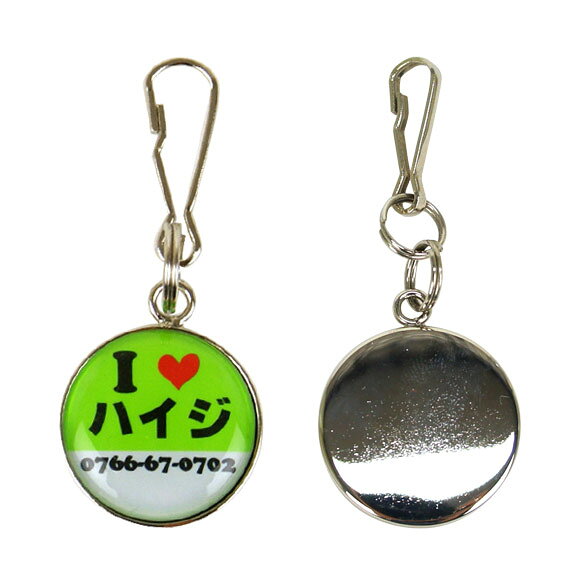 【迷子札 犬 猫】【ネームプレート ドッグタグ 名札 鑑札】【脱走対策 防災】【名入れ 名前入り ネーム入り 印字】【チャーム アクセサリー ストラップ 雑貨】【ペット 子供】【i dog 楽天】 メーカー希望小売価格はメーカーサイトに基づいて掲載しています【迷子札 名札】iDog&iCat オリジナルネームタグ 迷子札 アイラブ【ネームプレート ドッグタグ】 ホワイト/ピンク/グリーン の3カラー 表と裏 プレートのデザイン 2.0kgのコリンゴ使用 3.8kgのえのきちゃん使用 金具の仕様が変更となります 愛犬・愛猫の名前を入れてお作りします♪ 愛犬・愛猫が万が一、迷子になったときのために… iDogオリジナル柄のかわいい迷子札はいかがですか♪ 小さなコイン型の丸いプレートに可愛い絵柄が入っていて、 一見迷子札には見えないくらい、とってもオシャレです! 絵柄の中に、ワンちゃんの名前や電話番号などを 入れて、貴方だけの1枚をお作りします。 タグには取り付け金具がついていますので、 届いてすぐ首輪に取り付けてあげることができますよ。 また、お好みで金具を付け替えれば オーナーさんのストラップやアクセサリーにもなりますね♪ 愛犬・愛猫とお揃いや色違いで作っても素敵★ 金具の仕様が順次変更となります。 使用方法 金具について 金具は取り外し可能です。組合せにより長さを調整できるので、用途に合わせて組み替えて下さい。 二重カンのみ 猫ちゃんや小型犬など小さい子が使用する時におすすめです。 ナスカンのみ 小型〜中型犬程度の子におすすめです。首輪に直接ナスカンを通せばネームプレートが正面を向きます。 二重カン+ナスカン 中型〜大型犬程度の子におすすめです。首輪のDカンに付けた時にネームプレートが正面を向きます。 楽しみ方色々♪ 首輪やリードにつけて、お散歩時に自慢しちゃおう♪ オーナーさんのキーホルダーに♪ 二重カンのみの状態で、ポーチやペンケースのジッパー部分に♪ 金具を全部外してストラップ紐を通せば、携帯電話のストラップに♪ ご注文前に必ずご確認下さい! 【お名前】【お電話番号】【フリースペース】の部分に入れたい文字を、必ず備考欄に記入しご注文下さい。 入力文字数が多い程、文字のサイズは小さくなります。 キャンセルはできませんので、内容はくれぐれもお間違いのないよう、お願いいたします。 ひらがな・カタカナ・ローマ字・漢字・数字(1、2、3…)が使えます。文字のカラーは変更できません。 文字数が同じくらいであれば、電話番号の代わりに趣味のサークルやチーム名、URLなどでもお入れ致します。 オーダーメイドで1つ1つお作りするため、ご注文受付後のキャンセルや、初期不良以外のご返品は一切お受けできませんのでご了承くださいませ。 ご注文が混み合った場合は発送が遅れることがあります。 宅配便ご指定の方は、到着日指定をなるべくお控え下さい。 ご入用のお日にちの希望がある場合、早い時期のご注文をお願いいたします。 お名前の表記方法 お名前はお好きな表記方法でお作りすることが出来ます。文字色の変更は出来ません。 フリースペースについて お電話番号の下に3〜8文字程度のお好きな言葉を入れることが出来ます。特にご指定が無ければ空白となります。 商品詳細 カラー ホワイト/ピンク/グリーン 素材 【本体】PP樹脂、紙、真鍮【ナスカン】真鍮【2重リング】鉄 サイズ直径金具の長さ金具の長さ Sサイズ20mm4g(10円玉くらいの重さ)22mm Mサイズ25mm5g(100円玉くらいの重さ)22mm 着用モデルの詳しいサイズを知りたい時は… モデルDATA一覧 モニターなどにより実際の商品と色味が異なる場合があります。 商品は完全防水ではありません。ご了承下さい。 関連リンク 首輪一覧へ ネームタグ一覧へ