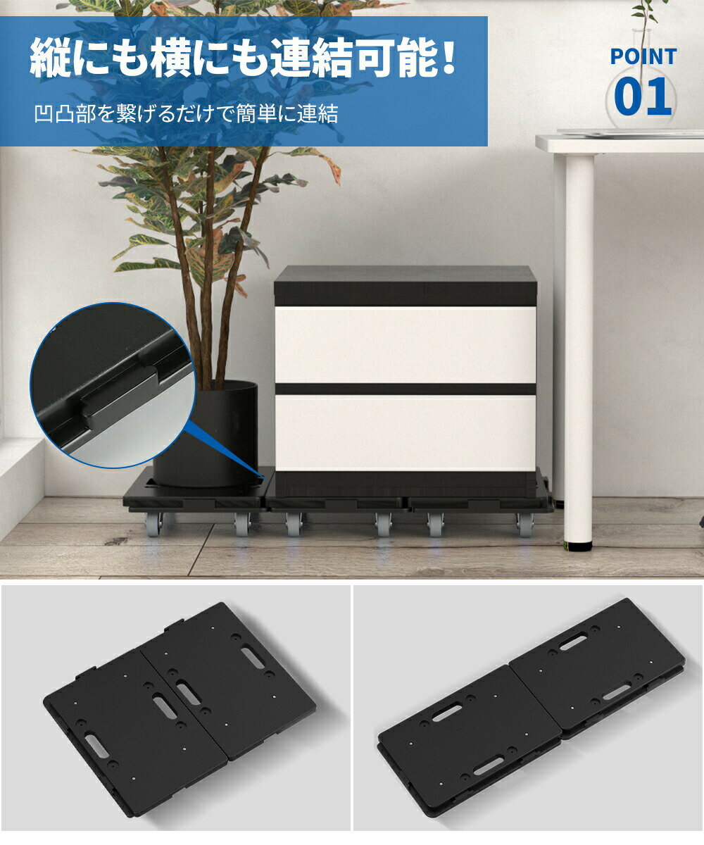 【11%OFFクーポン+P5倍★12/1限定】平台車 キャスター付き 1個 2個セット 連結可能 耐荷重100kg 省スペース 軽量 安定 丈夫 小型 収納 便利 積み重ね スタッキング可能 連結キャリー 連結平台車 連結 台車 家庭用 収納グッズ キャリー 運搬 カート ミニ コンパクト