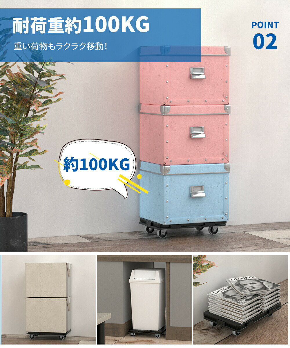 商品名 連結平台車 商品仕様 セット内容: 本体×1/2 キャスター×4/8 サイズ:27.5*41*8cm 重量:約1.3kg 耐荷重:100kg 材質: 本体:ポリプロピレン キャスター:スチール、エラストマー 商品説明 【縦にも横にも連結可能!】 凹凸部を繋げるだけで簡単に連結できます。載せる物のサイズに合わせて連結でき、様々な場面で役立つ! 【耐荷重100KG!】 重い物も楽々運べる~ 【持ち運びに便利!取っ手付&軽量設計】 片手でも持ち上げられる約1.3kgの軽量設計。 さらに2つの取っ手が付いているため、ラクラク持ち運び可能。 【360°回転キャスター】 エラストマーキャスターは低い弾性を持っており、凹凸のある路面でも走行性に優れ、床への走行痕が発生しにくいです。キャスターは360°回転可能で、スムーズに移動できます。 【厚さはわずか8cm】 ベッド下に収納するのはもちろん、隙間なども収納OKのコンパクト設計。 【積み重ね(スタッキング)可能!】 使わない時は重ねて省スペースに保管できます。 注意事項 ※商品管理には十分留意しておりますが、万一、初期不良品であった場合、 またはご注文の商品と違う場合は商品到着後、ご注文番号とお写真を、到着から7日以内に当店までご連絡をお願いいたします。当店にて確認後、部品再送または良品とご交換させていただきます。 ※商品写真はできる限り実物の色に近づけるよう徹底しておりますが、 お使いのモニター設定、お部屋の照明等により実際の商品と色味が多少異なる場合がございます。予めご了承ください。 ※商品は海外製品になりますので、多少の傷や汚れがある場合も御座います。 ※本製品を使用した事による直接的、間接的に生じた事故、損害、破損についての責任は当方では負えませんのでご注意下さい。 ※複数店舗を運営しておりますため、ご注文の入れ違い等で欠品などになってしまう場合がございます。万が一、発送が遅れる場合はご案内差し上げます。誠に恐れ入りますがご了承くださいますよう、お願い申し上げます。平台車 キャスター付き 連結キャリー 耐荷重100kg 連結平台車 ホームキャリー 連結 台車 2個セット 積み重ね 便利 連結可能 収納 クローゼット 家庭用 押し入れ 便利 収納グッズ キャリー 押入れ収納 連結平台車 耐荷重100kg 2個セット 運搬 荷物 静音 運搬 荷物 軽い 台車 家庭用 業務用 5 おすすめ商品