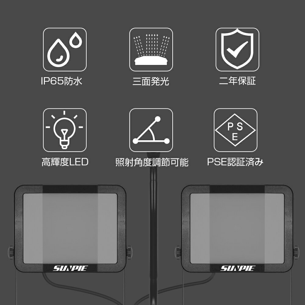 商品仕様 三脚スタンド サイズ:幅25cm×奥行5cm×高さ18cm 高さ調節範囲:116cm~200cm 発光色:昼光色のみ&昼光色・昼白色・電球色切替 コード長さ:約2.5M 重量:約5KG 消費電力:120W(60W×2) 明るさ:20000LM(10000LM×2) L型スタンド サイズ:幅29.5cm×奥行24cm×高さ30.5cm 発光色:昼光色・昼白色・電球色切替 コード長さ:約2.8M 重量:約1.3KG H型スタンド サイズ:幅26.5cm×奥行22.5cm×高さ38.5cm 発光色:昼光色・昼白色・電球色切替 コード長さ:約2.8M 重量:約1.3KG 本体材質:アルミ、強化ガラス 入力電流:1.27A /電圧:AC100V 50/60Hz 防水等級:IP65 ※実寸サイズを測っているため、多少な誤差が出る場合がございます。 セット内容 LED投光器*2 ブラケット*1 三脚スタンド*1 ハンドル*1 ネジ*5 説明書*1 商品特徴 【幅広い使用範囲】投光器の使用範囲は幅広い、様々なシーンで大活躍します!車庫、庭、公園、夜釣り、トンネル、作業灯、駐車場灯、看板灯、街灯、町内防犯灯、舞台照明、BBQ、ガソリンスタンド、工事現場、夜間イベントなどに適用します 【高輝度・長寿命】明るさ20000lmでまるで昼間のような感じられる。空間をしっかり照らし、夜間や暗所での作業をサポートする。 長寿命で約15年取り替え不要。白熱球に比べて虫が寄りにくく、熱くなりにくい 【防塵防水】IP65規格で粉塵が内部に侵入せず、いかなる方向からの水の噴流を受ける規格!(※浸水はダメ。)様々な場面で活躍できます! 注意事項 ※商品管理には十分留意しておりますが、万一、初期不良品であった場合、 またはご注文の商品と違う場合は商品到着後、ご注文番号とお写真を、到着から7日以内に当店までご連絡をお願いいたします。当店にて確認後、部品再送または良品とご交換させていただきます。 ※商品写真はできる限り実物の色に近づけるよう徹底しておりますが、 お使いのモニター設定、お部屋の照明等により実際の商品と色味が多少異なる場合がございます。予めご了承ください。 ※複数店舗を運営しておりますため、ご注文の入れ違い等で欠品などになってしまう場合がございます。万が一、発送が遅れる場合はご案内差し上げます。誠に恐れ入りますがご了承くださいますよう、お願い申し上げます。 ※仕様変更 ▼変更日:2025年8月 三脚スタンドタイプの本体カラーはベージュよりブラックに変更しました。おすすめ商品