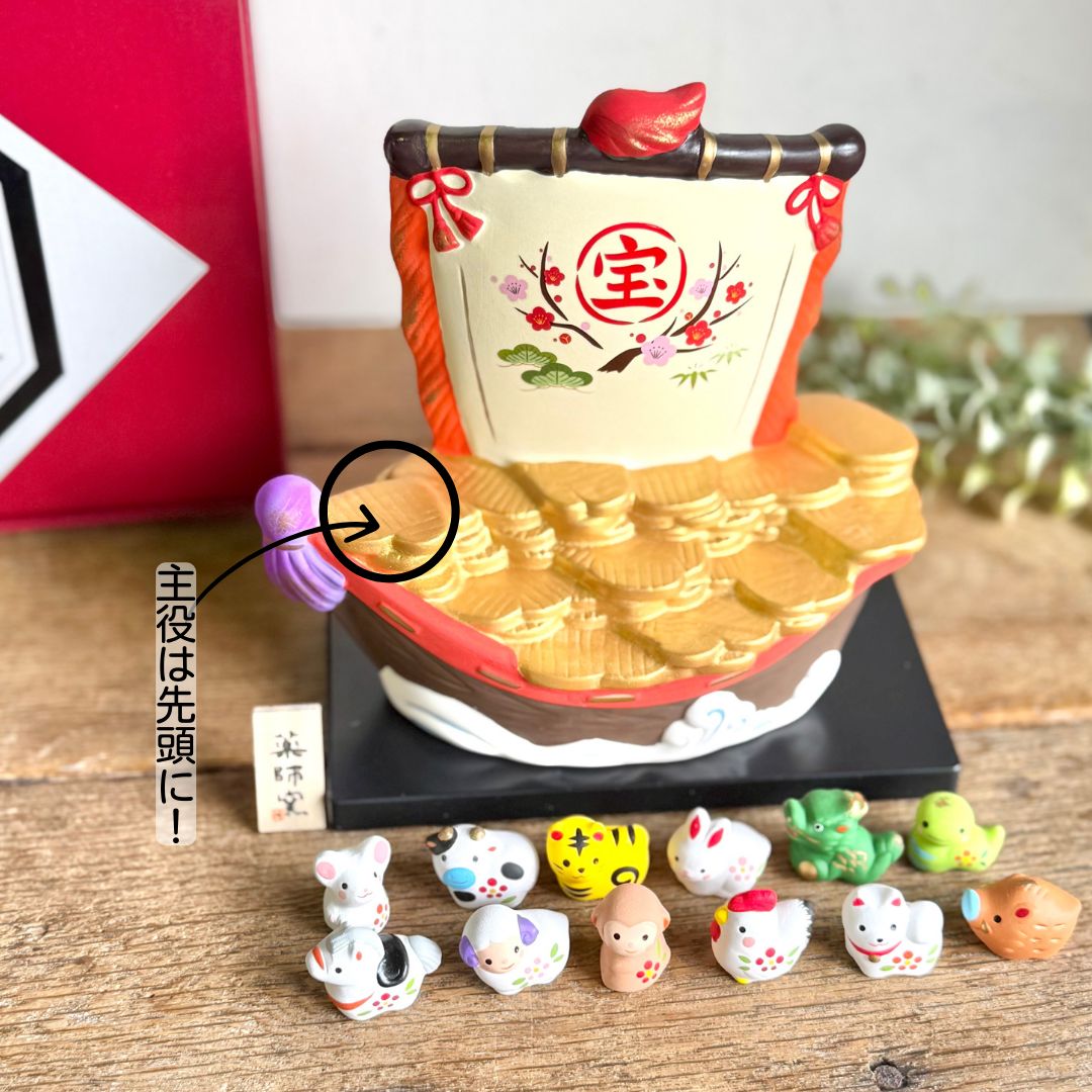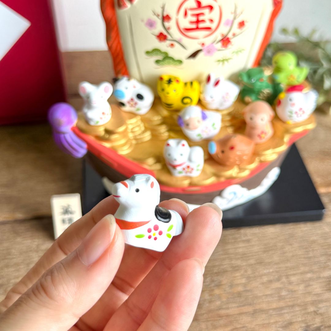 【即納】宝船 十二支飾り 干支 置物 馬 セット 宝船十二支飾り 毎年飾れる 2026 年 干支の置物 コンパクト 十二支 午 午年 ウマ年 うま年 うま 正月飾り 十二支飾り 十二支置物セット 干支置物 和風 おしゃれ かわいい 干支置き物 ミニチュア 薬師窯 陶器 新年インテリア