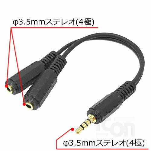 4極 ステレオ 2分配ケーブル 0.2m3.5mm4極 ステレオミニ(プラグ(オス)-ジャック(メス)x2)【COMON】 435-Yメール便対応