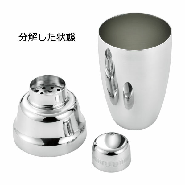 商品仕様 ●材質:18-8ステンレス ●サイズ:口径約73mm、高さ約171mm ●重量:235g ●満水容量:約360ml ●原産国:日本製(燕三条)赤川器物 商品の特徴 ●スタンダードなカクテルシェーカー(360cc)です。 ●ステンレス製で衛生的。お手入れが簡単です。 ●底面がシャープにくびれており、氷の回転が非常にスムーズ。 ●振るのにちょうどいい重みがあります。 ●業務用としてプロのバーテンダーにも愛用されています。 関連商品 カクテルシェーカーA(中)500mlスタンダードなフォルムのステンレス製カクテルシェーカー。