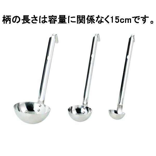 商品仕様 ●材質:18-8ステンレス ●柄の長さ:15.0cm ●容量:お玉サイズ(重量) 10cc:直径3.5(40g) 15cc:直径3.5(40g) 20cc:直径4.5(45g) 30cc:直径5.0(50g) 40cc:直径5.0(55g) 50cc:直径5.8(60g) 60cc:直径5.8(60g) 70cc:直径6.5(75g) 80cc:直径6.5(80g) 90cc:直径7.7(80g) 100cc:直径7.7(85g) ●原産国:日本製(燕三条) ●製造元:新潟県燕市 赤川器物 商品の特徴 ●ハンドルの短いレードル、容量11種類です。 ●タレや調味料に便利なサイズです。 ●18-8ステンレス製で丈夫で長持ち、衛生的です。 ●柄の先がフックになっているので、鍋などの縁に掛けたり、吊るす事ができます。 ●柄が短いので狭いキッチンでも取り回しやすいお玉です。 ●小鍋やキッチンポット等と一緒に使いやすい長さです。 ●業務用として作られています。 短柄レードルリンク ワンピース(一体成型)レードルステンレスなので色やにおい移りの心配もなく長く使える業務用レードル。