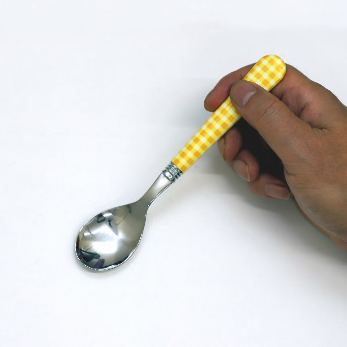 ナガオ エピチェック デザートスプーン イエロー 18.4cm ステンレス 日本製 おしゃれ かわいい カラフル チェック柄