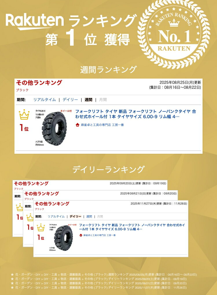 よく一緒に購入されている商品フォークリフト タイヤ 新品 フォークリフト 78,940円■商品名: フォークリフト用ノーパンクタイヤ フォークリフト用タイヤ 合わせ式ホイール付 1本 タイヤサイズ 6.00-9 リム幅 4.00 穴数6 ハブ穴径150mm タイヤ幅6インチ リム径9インチ タイヤ外径515mm ノーパンク 新品 産業車両 フォークリフト 重機 車輪交換 黒 トヨタ コマツ TOYOTA 送料無料 ホイール付 1本当り最大荷重1900KG フォークリフト 重機用ノーパンクタイヤ 6.00-9 タイヤ幅6インチ リム径9インチ リム幅4.00 穴数6 ハブ穴径150mm 交換用タイヤ 新品 KOMATSU 特徴: ☆国内主要メーカー(トヨタ、コマツなど)のフォークリフトへ取付が可能です。 ☆適合車種: トヨタ:8FG10(前輪),8FGL10(前輪),02-8FG10(前輪),02-8FGL10(前輪),8FG20(後輪),8FGL20(後輪),8FG25(後輪),8FGL25(後輪),02-8FG20(後輪),02-8FGL20(後輪),02-8FG25(後輪),02-8FGL25(後輪),02-8FD20(後輪),02-8FDL20(後輪),02-8FD25(後輪),02-8FDL25(後輪),8FB10(前輪),8FBL10(前輪),8FB14(前輪),8FBL14(前輪),8FB15(前輪),8FBL15(前輪),8FBH10(前輪), 8FBH14(前輪), 8FBH15(前輪),40-8FB20(後輪), 40-8FB25(後輪),7シリーズなど ☆商品詳細☆ ・適合メーカー:トヨタ,コマツ ・対応車種:1〜2.5T ・タイヤ:6.00-9 ・個数:1本 ・タイヤ外径:515mm ・リム幅:4.00 ・穴数:6 ・穴径:17.5mm ・ハブボルト穴ピッチ(PCD):180mm ・ハブ穴径:約150mm ・荷重:1900KG/本 ・ホイール:ホイール付き ・取扱説明書は御座いません。 ※この商品は合わせホイールとノーパンクタイヤのセットです。 ※お取り付けに関しては、フォークリフトタイヤの仕様、寸法をよくご確認ください。 ※車体倒れる等による事故の防止の為、安全には十分注意して作業をしてください。 ※タイヤの取り付けの際には、規定のトルクにて取り付けをお願い致します。また、タイヤの取り付けは自己責任のもと、十分気を付けて作業してください。 ●ご購入前の注意事項★ ●こちらの商品は、完成品になります。 ●こちらの商品は非常に大型商品のため、個人宅宛の場合、【西濃運輸か日本通運の営業所留め】となりますので、予めご了承下さい。 ●商品は大変重量がございますので、パレットに固定しての輸送となります。 大量にまとめてご注文の際、荷受けには、フォークリフト等が必要な場合がございます。(お客様ご自身で、ご用意お願いします。) ●輸入商品の為、擦り傷、塗装はげ等があります。ご納得の上、ご購入下さいませ。 ●ご購入後、お客様ご都合(イメージ違いなど)によるご返品、ご返金等は一切お受け致しておりません。 ●本商品を使用した際に発生したトラブル、事故につきまして、当社は一切の責任を負いません。ご使用に関しましては、全て自己責任にてお願い致します。 ■商品キーワード: フォークリフト長爪 フォークリフト用つけツメ フォークリフト アタッチメント つけツメ つけ爪 ロングフォーク ロング 運搬 荷役 サヤ フォーク 長爪 長さ107cm 122cm 137cm 152cm 167cm 182cm 240cm Forklift Extension fork フレコン ピン 販売 厚み 規格 重さ 荷重 クローズドボトム 爪 サヤフォーク ハンドリフト フォークリフト用 リフト リーチ ロックピン 寸法 1070 1220 1370 1520 1670 1820 2400 メーカー 強度 業務用 業務 作業用 工場用 倉庫 強力 現場工事 Forklift Extension fork パレット マスト ヒンジ 幅 調整 高さ 水平 滑り止め 規格 交換 間隔 角度 延長 厚み 間隔 シフター カバー 製造 材質 差し込み量 延長 自作 幅 寸法 長さ 荷重 フレコン 移動 位置 色 回転 荷重 強度 許容荷重 交換 固定 構造 鋼材 後傾 前傾 サヤ 伸縮 ストッパー スライド 接地 接触 セット 長さ 選定 鍛造 耐用年数 タイプ チルト 治具 吊り下げ 付け方 吊り 通販 点検 取り外し 特注 延長 トヨタ 外し方 フック マーキング 摩耗限度 曲がり まっすぐ 目印 メモリ 油圧 横移動 養生 ロックピン ゴム ドラム缶 ピッチ ピン 920 爪+9 5t 爪+5 4t 爪 爪 4本 爪 2.5t 爪 2m 爪 1500 吊り下げ 寸法 ロング 目印 交換 回転 ガイド ガード フック 脱着類似商品はこちらフォークリフト タイヤ 新品 フォークリフト 152,988円フォークリフト タイヤ 新品 フォークリフト 101,992円フォークリフト タイヤ 新品 フォークリフト 50,900円フォークリフト タイヤ 新品 フォークリフト 254,980円フォークリフト タイヤ 新品 フォークリフト 203,984円フォークリフト タイヤ 新品 フォークリフト 15,880円フォークリフト タイヤ 新品 フォークリフト 25,498円フォークリフト タイヤ 新品 フォークリフト 50,900円フォークリフト タイヤ フォークリフト ノーパ25,998円新着商品はこちら2025/11/19ハンドリフト 耐荷重2t 外幅550mm フォ31,300円2025/11/19ハンドリフト 耐荷重3t 外幅550mm フォ35,550円2025/11/19ハンドリフト 耐荷重2.5t 外幅550mm 34,650円再販商品はこちら2025/11/29新品 サヤフォーク クローズボトム 長さ21041,760円2025/11/283Dプリンター用 家庭用 業務用 PLAフィラ3,280円2025/11/25新品 サヤフォーク クローズボトム 長さ16031,760円2025/11/29 更新