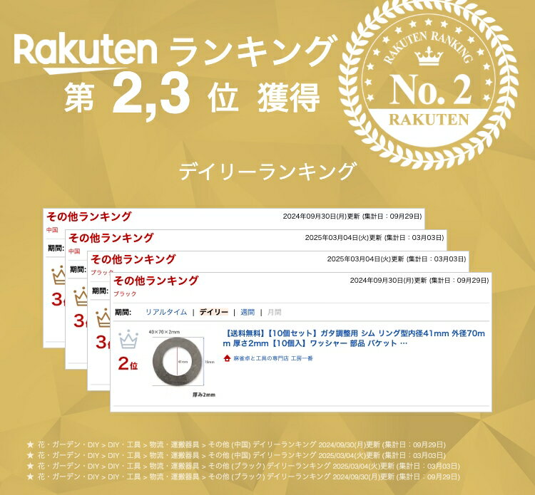 よく一緒に購入されている商品ガタ調整用 シム リング型内径41mm 外径73,500円ガタ調整用 シム リング型内径41mm 外径74,400円ガタ調整用 シム リング型内径41mm 外径72,700円 ■商品名 【送料無料】【10個セット】ガタ調整用 シム リング型内径41mm 外径70mm 厚さ2mm【10個入】ワッシャー 部品 バケット パワーショベル ユンボ ショベルカー シャフト建機用品 ■商品詳細 ・ワッシャー 10枚 ・サイズ:内径41mm 外径70mm 厚み2mm ※本商品を使用した際に発生したトラブル、事故につきまして、当社は一切の責任を負いません。ご使用に関しましては、全て自己責任にてお願い致します。 関連商品 500kg 取付・着脱簡単 ドラム缶吊り具 ドラム缶横吊り具 ロック付き 耐荷重500kg... 10,460円 500kg ドラム缶吊り具 ドラム缶縦吊り具 スチール製 耐荷重500kg DM500A |ドラム缶... 7,560円 500kg ドラム缶吊クランプ ドラム缶吊り具 耐荷重約500kg DM500B | 工場・倉庫で大... 13,480円 500kg ドラム缶吊り具 耐荷重500kg DL500A | ドラム缶縦吊り具 キャッチャー フック... 15,480円 500kg ドラム缶吊具 DL500B 耐荷重500KG | ドラム缶縦吊り具 キャッチャー フック... 19,800円 500kg ドラム缶吊り具 耐荷重500KG DL500C | ドラム缶横吊り具 キャッチャー フック... 4,760円 350kg ドラム缶吊具 ドラム缶縦吊り具 スチール製 耐荷重350kg DL350 | ドラム缶吊り... 9,780円 360kg 取付・着脱簡単 ドラム缶吊具 ドラム缶縦吊り具 スチール製 耐荷重360kg DL360... 7,800円 1tタイプ フォークリフト用吊りフック 荷重1トン フォークリフト アタッチメント 吊り具... 12,280円 2.5tタイプ フォークリフト用吊りフック 荷重2.5トン フォークリフト アタッチメント 吊り具... 19,460円 4tタイプ フォークリフト用吊りフック 荷重4トン フォークリフト アタッチメント 吊り具... 48,000円 5tタイプ フォークリフト用吊りフック 荷重5トン フォークリフト アタッチメント 吊り具... 58,000円 長尺物用 フォークリフト用吊りフック ビーム伸縮式吊り金具 狭幅長尺対応仕様 フォーク... 238,000円 新着商品はこちら2025/11/19ハンドリフト 耐荷重2t 外幅550mm フォ31,300円2025/11/19ハンドリフト 耐荷重3t 外幅550mm フォ35,550円2025/11/19ハンドリフト 耐荷重2.5t 外幅550mm 34,650円2025/12/04 更新
