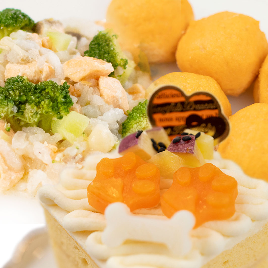 名称 犬用一般食 原材料 【さつまいものワンワンケーキ】卵、さつまいも、米粉、てんさい糖、ヨーグルト、人参、ゼラチン、ゴマ 【サーモンとブロッコリーのことこと雑炊】サーモン、米(富山県産)、ブロッコリー、えのき、煮干し、オリーブオイル 【サーモンボールのハンバーグ】サーモン、おから、ジャガイモ、卵 原産国 日本 内容量 【ホクホクかぼちゃのケーキ】1個(約5cm×5cm×5cm) 【サーモンとブロッコリーのことこと雑炊】100g 【サーモンボールのハンバーグ】80g 賞味期限 商品ラベルに記載 保存方法 −18℃以下で保存。解凍後は冷蔵保存し1~2日以内に使い切ってください。 製造者 IDEA DOG株式会社 〒164-0011 東京都中野区中央2-2-31 中野NSB 7F 与え方 解凍し、ケーキはピックを外して与えてください。個体の体型や体調に合わせて与える量を調整してください。 注意事項 モニターの発色によって色が異なって見えることがございます。 お食事の際、商品が毛に付着しやすくなっております。特に口元の毛が長いワンちゃんはお気をつけください。 栄養成分(1個あたり) 【さつまいものワンワンケーキ】熱量:182kcal タンパク質:7g 脂質:4.2g 炭水化物:30.6g 食塩相当量:0.17g 【サーモンとブロッコリーのことこと雑炊】熱量:172kcal タンパク質:9.4g 脂質:6.5g 炭水化物:20.7g 食塩相当量:0.05g 【サーモンボールのハンバーグ】熱量:124kcal タンパク質:10.2g 脂質:7.8g 炭水化物:6.3g 食塩相当量:0.1g ※手作りのため栄養成分は目安です。 区分 ペットフード 広告文責 IDEA DOG株式会社 03-6908-8115さつまいものワンワンケーキセット Idea dog chef (イデアドッグシェフ)は、国産・無添加、上質な食材を使用した、身体に優しいワンランク上のお食事をお届けするプレミアム・ドッグミール・ブランドです。 愛犬と美味しい食事で素敵なひと時を過ごし、食を通じた生活質の向上を目指しましょう。 ドッグフード 国産 無添加 手作り 手づくり 犬 犬用 イヌ ご飯 ごはん 犬のご飯 犬のごはん 手作りドッグフード ペット フード 誕生日 プレゼント ギフト バースデー 記念日 うちの子記念日 お祝い ご褒美 ご馳走 贈り物 トッピング 食欲 食い付き 食べない 美味しい おいしい シニア ダイエット 低カロリー 柔らかい やわらかい セミモイスト ウェット ウエット ヒューマングレード プレミアム ディナー 高級 高品質 保存料 着色料 酸化防止剤 香料 添加物 不使用 詰め合わせ セット ケーキ サツマイモ さつまいも 米粉 サーモン 魚 フィッシュ ハンバーグ 雑炊 おじや 野菜 米 コシヒカリ スープ クリスマス くりすます christmas お正月 ハロウィン ハロウィーン バレンタインデー 小型犬 中型犬 大型犬 冷凍 送料無料 Ideadogchef イデアドッグシェフ