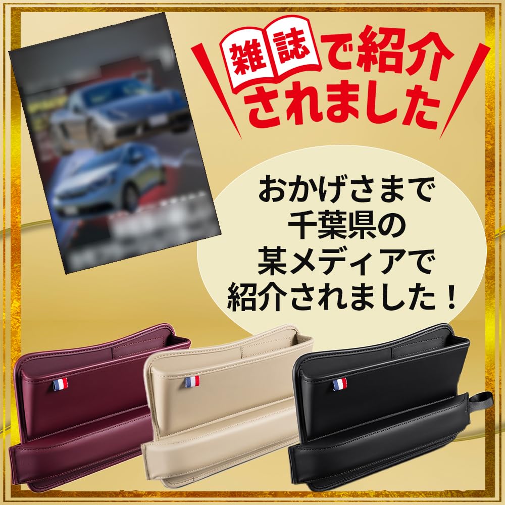 商品情報 主な仕様 【収納力・整理整頓】 シート横の隙間を有効活用!スマホやカードをスッキリ収納 【利便性・機能性】 充電しながら使える便利設計!ケーブル用の通し穴付きで快適 【高級感・デザイン】 本革調で車内がワンランクアップ!内装になじむ上品なデザイン 【固定性・安全性】 シートベルトにしっかり固定!走行中でもズレずに安心 【省スペース活用】 デッドスペースが便利な収納場所に早変わり!ムダを解消