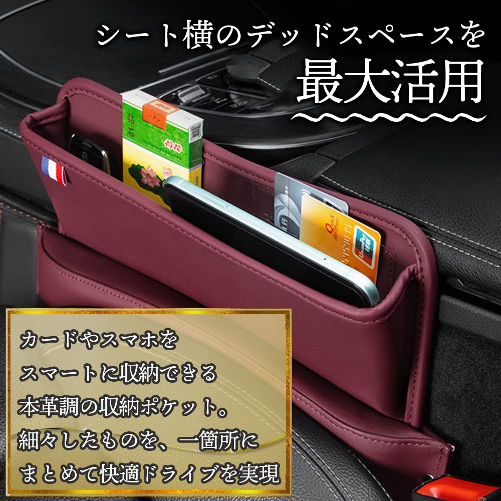 ideamall 車 隙間 収納 シートサイドポケット 隙間クッション 充電用穴設置 本革調