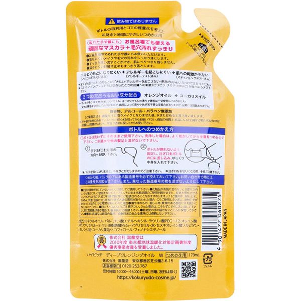 4901477060275 ハイピッチ ディープクレンジングオイルW つめかえ用 170mL【キャンセル不可】 黒龍堂 詰替用 お風呂でも使える