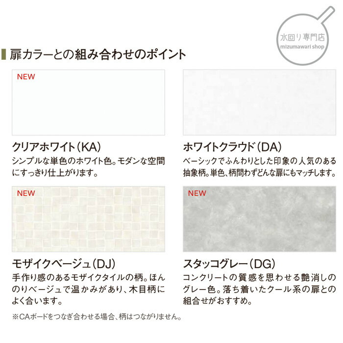 ・掲載商品については、商品のみ価格です。 ・販売は商品のみであり、工事・施工などは付帯されておりません。工事の手配は、ご注文者様にて行う必要があります。 ・別途組み立て・設置を行っていただく必要があります。 ・配送について4tロング車(全長8440mm 全幅2240mm 全高2440mm)での配送となります。配送可能か確認してください。 ・荷受については、軒先下ろしです。また再配達不可能となりますのでご理解ください。 ・納期については納期確定後の納入日変更は不可です。 メーカー希望小売価格はメーカーカタログに基づいて掲載していますクリナップ CAボード(1枚組) 240cm ■KMJ-N240KA(クリアホワイト)(鏡面仕上げ) ■KMJ-N240DA(ホワイトクラウド)(鏡面仕上げ) ■KMJ-N240DJ(モザイクベージュ)(鏡面仕上げ) ■KMJ-N240DG(スタッコグレー)(艶消し仕上げ) ■寸法:W2420 D2.4 H910 (単位:mm) ■素材:メラミン化粧不燃材 ■国土交通省不燃認定番号 NM-2183