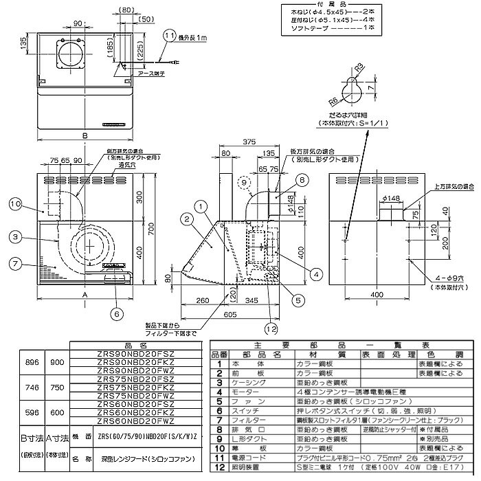 ・掲載商品については、商品のみ価格です。 ・販売は商品のみであり、工事・施工などは付帯されておりません。工事の手配は、ご注文者様にて行う必要があります。 ・別途組み立て・設置を行っていただく必要があります。 ・配送について4tロング車(全長8440mm 全幅2240mm 全高2440mm)での配送となります。配送可能か確認してください。 ・荷受については、軒先下ろしです。また再配達不可能となりますのでご理解ください。 ・納期については納期確定後の納入日変更は不可です。 メーカー希望小売価格はメーカーカタログに基づいて掲載しています※イメージは高さ70cm・横幕板をつけた状態です。 ※横幕板は付属しておりません。 ■間口90cm ■高さ70cm ■本体色:ブラック ●シロッコファン ●フィルター:はつ油加工 ●手元燈付(40W) ●風量m3/h(50Hz/60Hz)<0pa時>(強)590/550(弱)315/290 ●騒音dB(50Hz/60Hz)<0Pa時>(強)42/40 (弱)29/27 ●消費電力 W(50Hz/60Hz)<0Pa時>(強)101/111 (弱)45/45 ※幕板は別売りです。幕板はこちらからご注文ください。 ※側方排気又は後方排気用のL形ダクトは別売りです。 ・掲載商品については、商品のみ価格です。 ・販売は商品のみであり、工事・施工などは付帯されておりません。工事の手配は、ご注文者様にて行う必要があります。 ・別途組み立て・設置を行っていただく必要があります。 ・配送について4tロング車(全長8440mm 全幅2240mm 全高2440mm)での配送となります。配送可能か確認してください。 ・荷受については、軒先下ろしです。また再配達不可能となりますのでご理解ください。 ・納期については納期確定後の納入日変更は不可です。