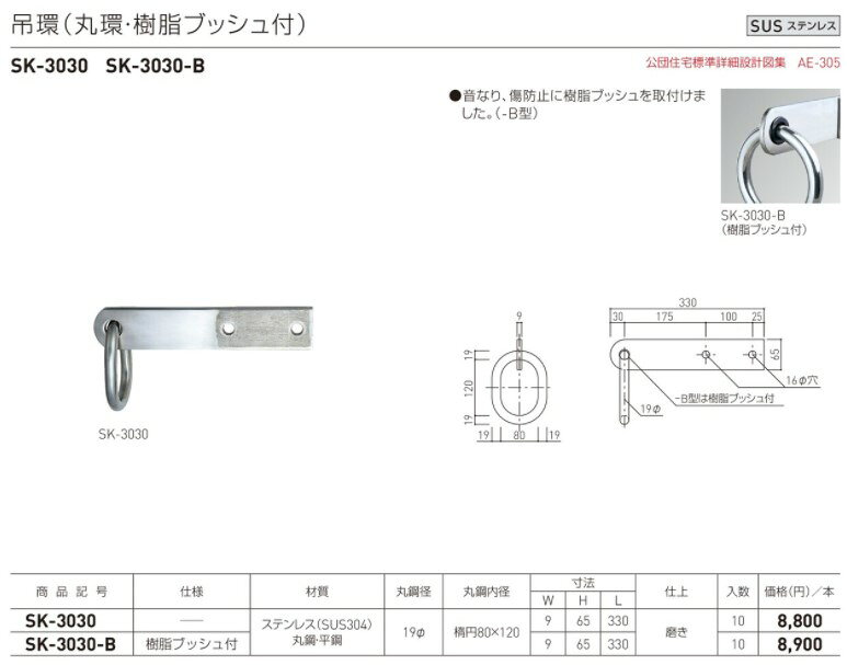 神栄ホームクリエイト SK-3030-B 吊環(丸環・樹脂ブッシュ付) (旧新協和)