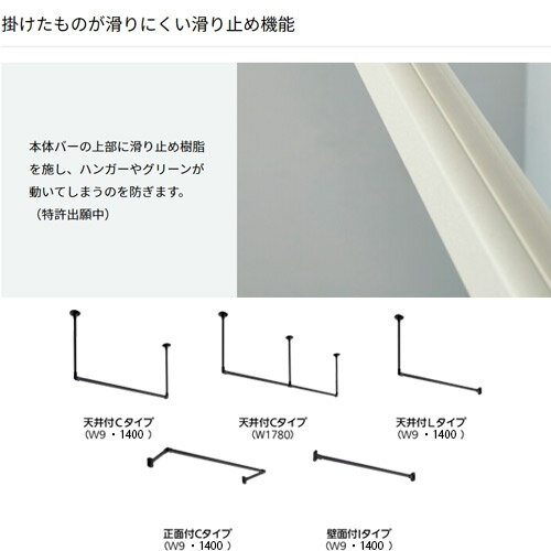 収納、ディスプレイ、ランドリーバー、「掛ける」から始まる新しい生活。すっきりとしたスマートなデザインです。傷やサビがつきにくいフィルムラッピングを施しています。滑り止め樹脂付きでハンガーなどが滑りにくい構造です。取扱いやすいアルミ製で現場にあわせてカット可能です。※本製品は室内用です。屋外や浴室への取付はできません。ブラケットは1400mm以内の間隔で取付てください。材質:アルミ合金押出型材、塩化ビニル樹脂被膜ラッピング、硬質・軟質塩化ビニル樹脂、亜鉛ダイカスト耐荷重:10kg付属品:取付ねじ(ナベ3.5×35mm)、六角レンチ