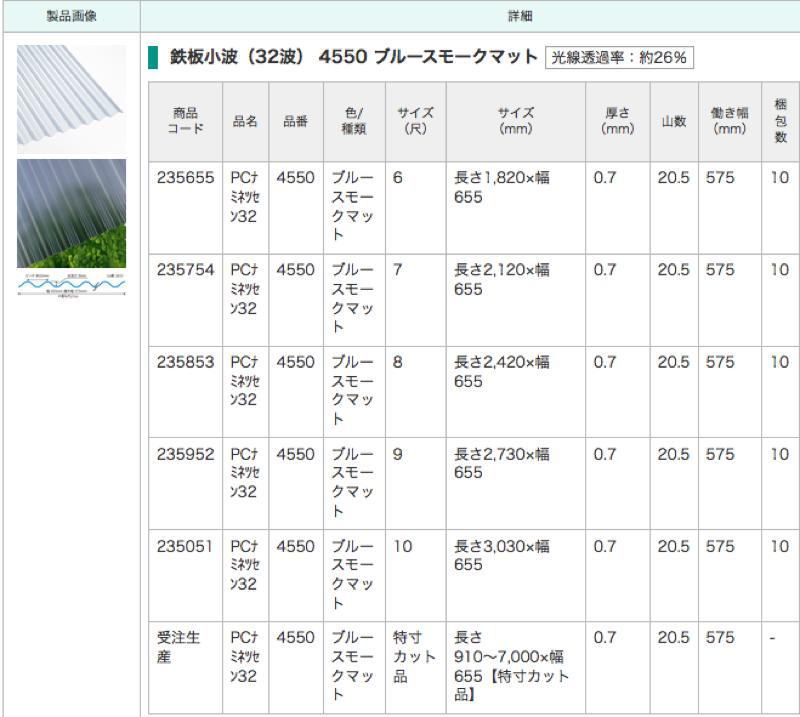 (10枚入) タキロン ポリカ波板 熱線カット 4550(ブルースモークマット)6尺 1820×655×0.7mm 235655 ※直送/個人宅不可 【特長】 熱線カット率約50%(クリア・クリアスモークは30%)です。 耐衝撃性に優れ、2kgのナス型鐘を10mの高さから落としても割れません。(JIS A5702) 耐熱、耐寒性に優れ、-40〜120度の広い範囲で使用できます。 防火地域、準防火地域、法22条区域における屋根用途に使用できます。 【用途】 テラス、カーポート、バルコニー、サンルーム、雪囲い、目隠し、住宅明かり採り。 【配送に関するご案内】 こちらの商品はメーカー直送でのお届けの為、下記内容について予めご了承ください ※代金引換はご利用頂けません ※ご注文の際は、必ずお届け先に会社名か屋号をご入力ください (個人宅様へのお届けはできません 平日営業している事業所へのお届けのみとなります) ※4t車で進入・停車できることが条件です ※日時指定・再配達不可です ※沖縄・離島は配送不可となります