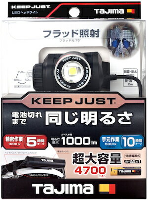 タジマ KJS100A-B47 ヘッドライト キープジャスト ブースト1000lm フラッド照射 充電池セット
