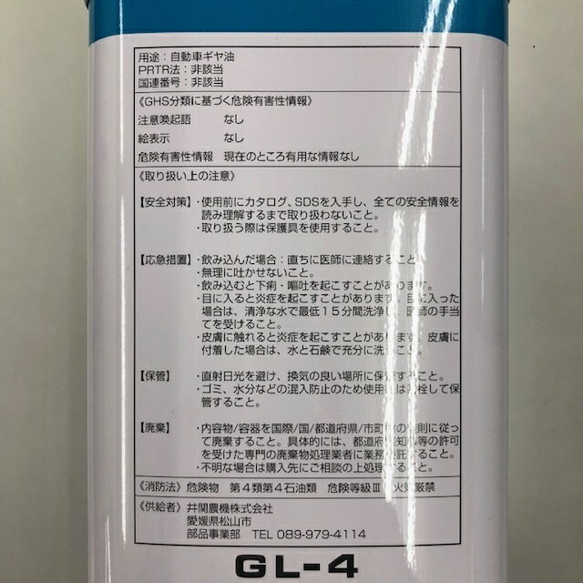 イセキ純正『ハイポイドギヤーオイル #140 GL-4』4L(品番:7019-003-400-10)-ガソリン ギヤオイル ギアオイル ミッションオイル