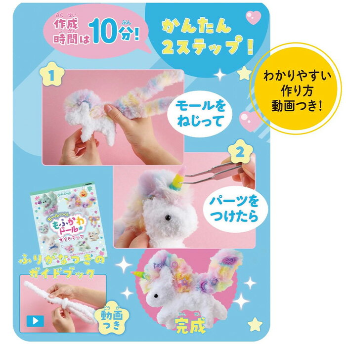 モールドール モール人形 手作り キット ぬいぐるみ うさぎ ユニコーン ねこ あひる ハンドメイド 人形 簡単 かわいい 簡単 自由研究 工作 夏休み 手芸 カラーモール【▲5】【FDC】/GCモールで作るもふかわドール