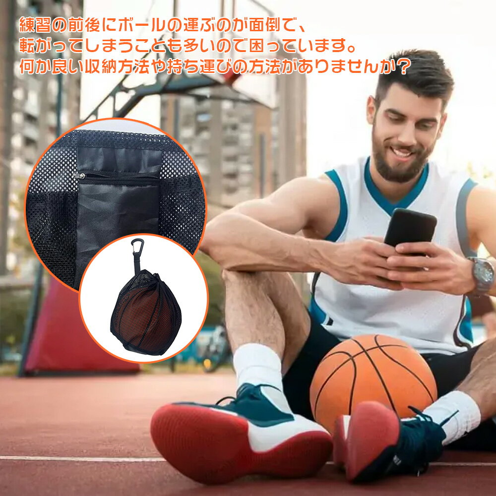 【ポータブルフックデザイン】ボールネットは、便利なポータブルフック付きで簡単に安定して掛けられます。スポーツバッグに付けてスペースを有効活用でき、持ち運びもスムーズです。 【十分な収納スペース】約25.4×30.5cmのボールネットは、サッカー、バスケットボールなどを収納可能。内側ポケットには小物も収納でき、ファスナー付きでホコリや飛び出しを防ぎます。 【高品質素材】軽量で耐久性のあるオックスフォードネット使用。底部は防水レザーとナイロンで、磨耗や汚れからボールを守ります。 【通気性のあるデザイン】メッシュバッグで空気循環が良く、ボールを乾燥させて異臭を防ぎ、長持ちします。 【幅広い用途】さまざまなボールの持ち運びに便利で、スポーツ愛好者やアウトドア、キャンプに最適です。
