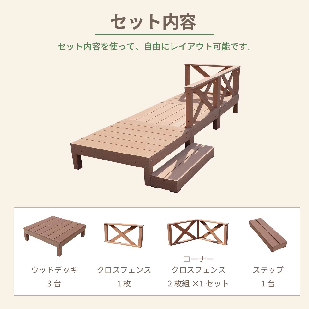 ウッドデッキ 人工木 0.75坪 7点セット ナチュラル デッキ本体3点 ローXフェンス3点 ステップ1点 アイウッドデッキ 10年以上の実績 色あせない 腐らない シロアリ防止 床面ザラザラ加工 リアルな木質感