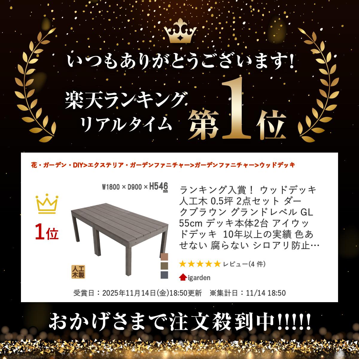 ランキング入賞! ウッドデッキ 人工木 0.5坪 2点セット ダークブラウン グランドレベル GL55cm デッキ本体2台 アイウッドデッキ 10年以上の実績 色あせない 腐らない シロアリ防止 床面ザラザラ加工 リアルな木質感
