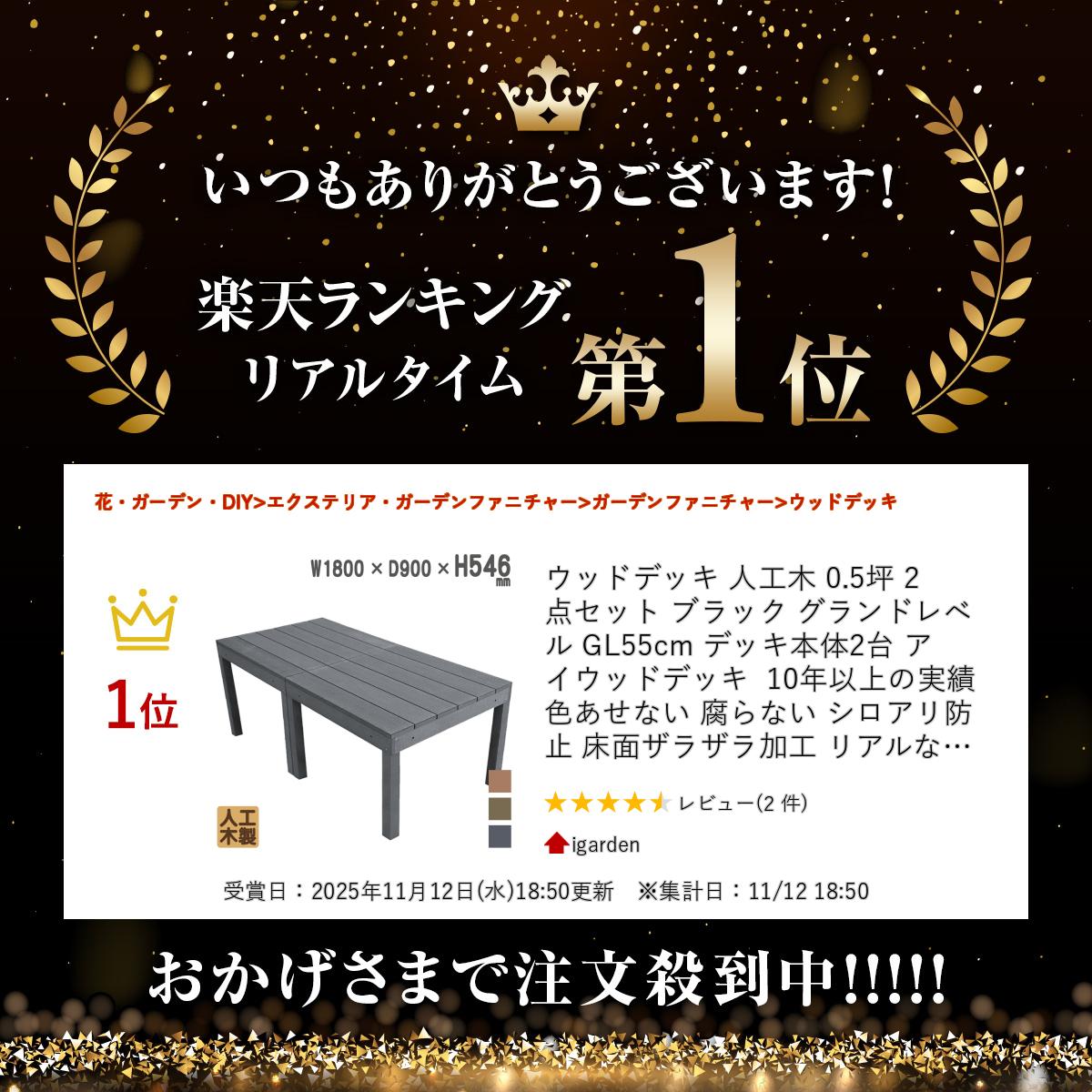 ランキング入賞! ウッドデッキ 人工木 0.5坪 2点セット ブラック グランドレベル GL55cm デッキ本体2台 アイウッドデッキ 10年以上の実績 色あせない 腐らない シロアリ防止 床面ザラザラ加工 リアルな木質感