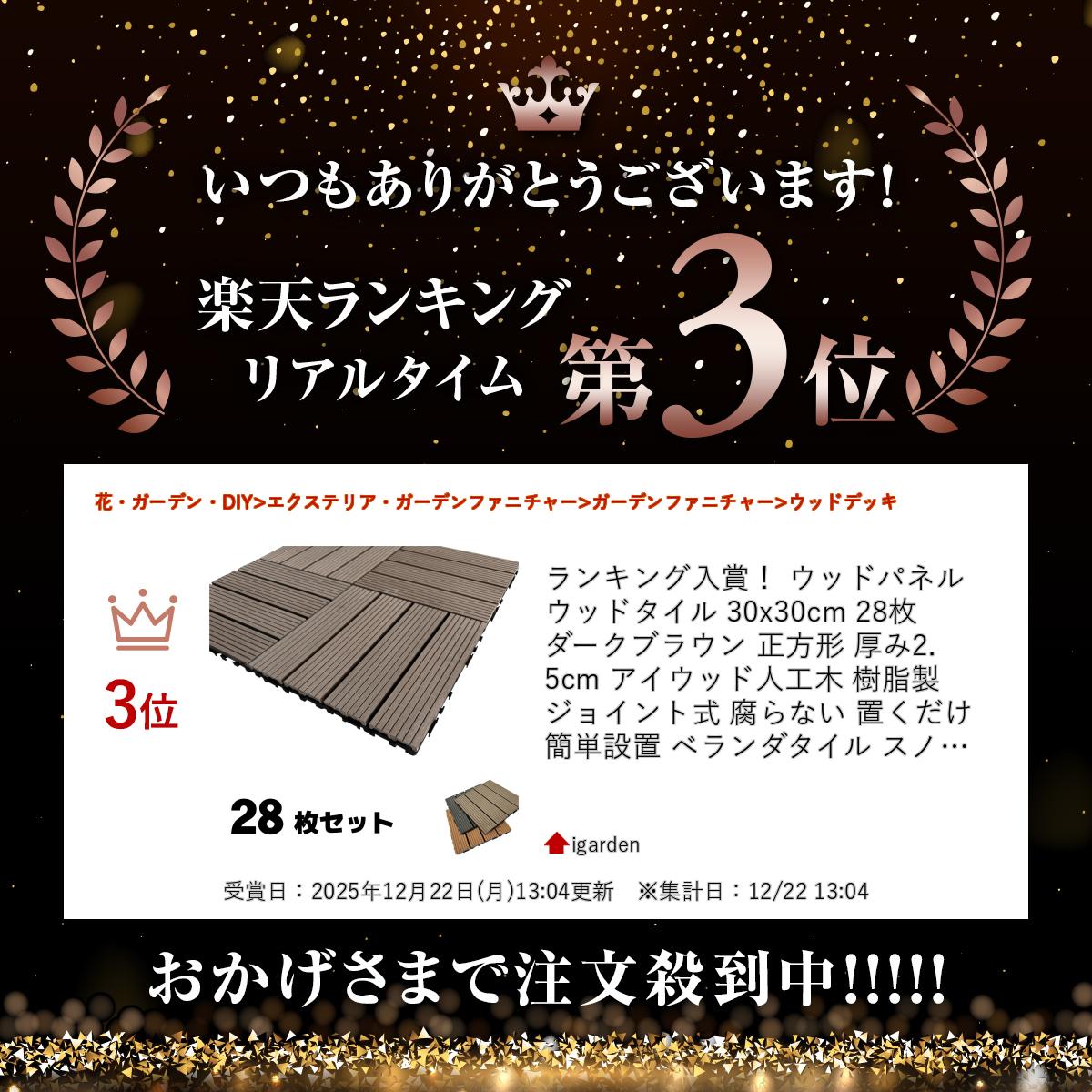 ランキング入賞! ウッドパネル ウッドタイル 30x30cm 28枚 ダークブラウン 正方形 厚み2.5cm アイウッド人工木 樹脂製 ジョイント式 腐らない 置くだけ簡単設置 ベランダタイル スノコ 屋外 屋内兼用 庭 ウッドデッキ タイルパネル