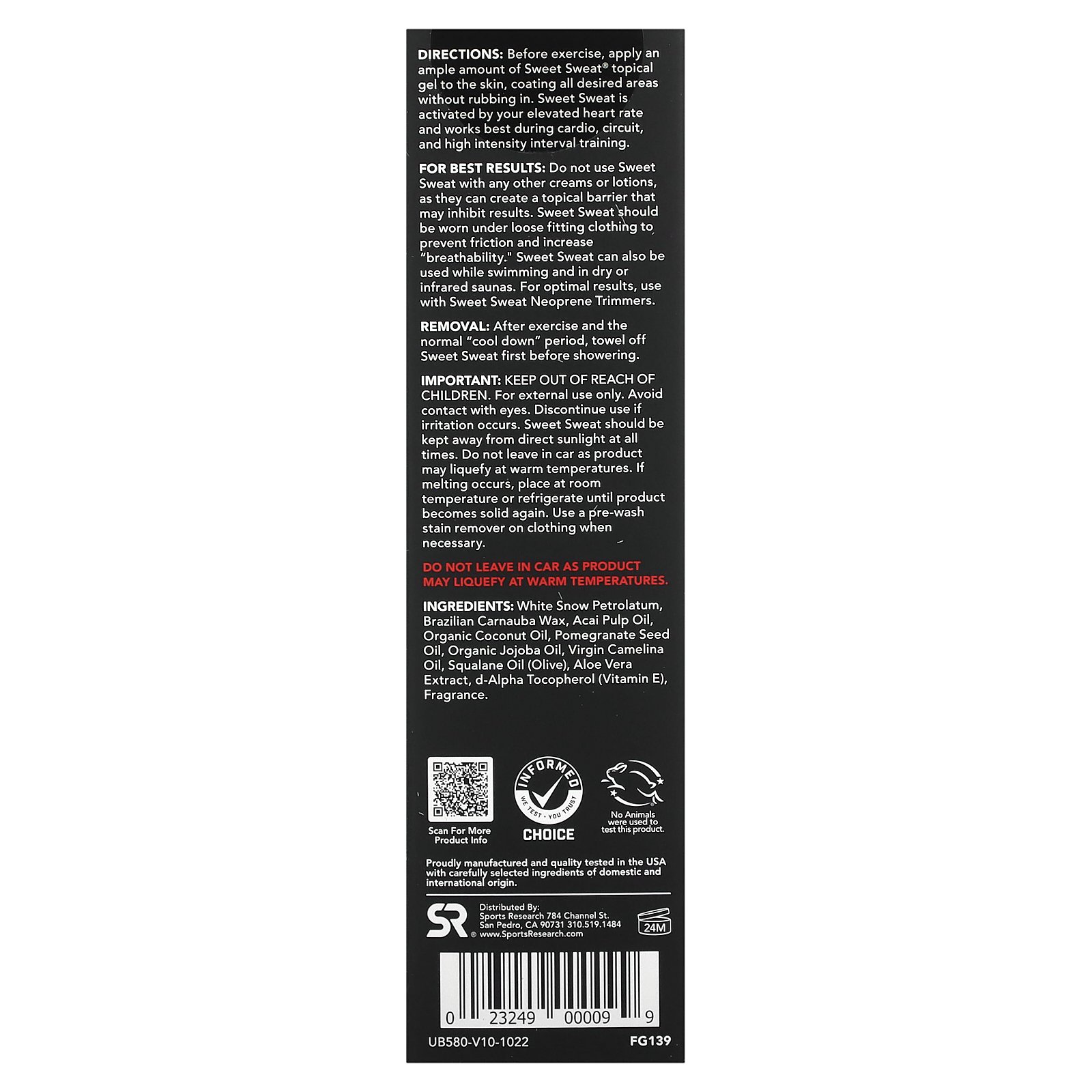 Sports Research スイートスウェット ワークアウト エンハンサー 【 iHerb アイハーブ 公式 】 スポーツリサーチ ボディクリーム ザクロオイル ワセリン ココナッツオイル ホホバオイル スティック フレッシュ182g