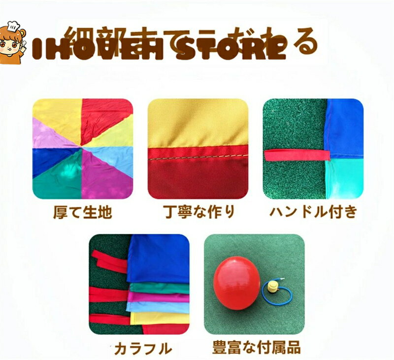 プレイパラシュート 5m 虹色カラフル プレイ傘 マスゲーム用 バルーンおもちゃ ボール付き 大人数対応 スポーツトイ 幼稚園・保育園向け 運動会 親子遊び プレゼント【海外通販】