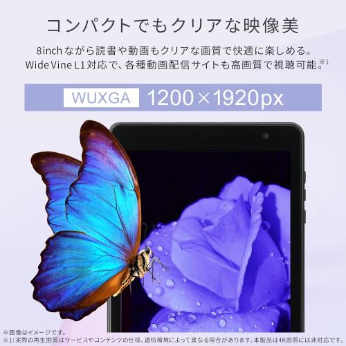 商品 保護フィルム貼付済 LUCAタブレット8インチ 最新のOSバージョン搭載!Android(TM)15 1200×1920px。読書や動画もクリアな画質で快適に楽しめる。Widevine L1 対応。 安心して使えるストレージ容量。 各種センサーを搭載。センサーが必要なアプリの使用をサポート。