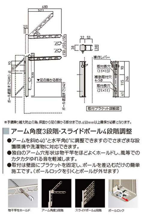 ▲●u.神栄ホームクリエイト【SK-70ASLP-SC】ステンカラー バルコニー物干金物(縦収納・ポール型) 1本