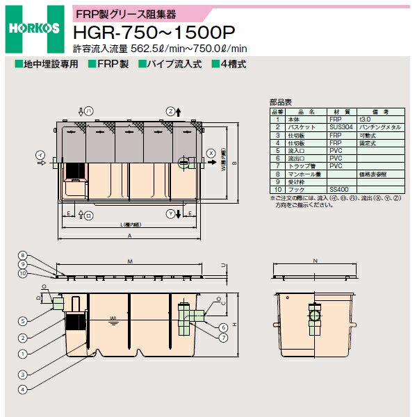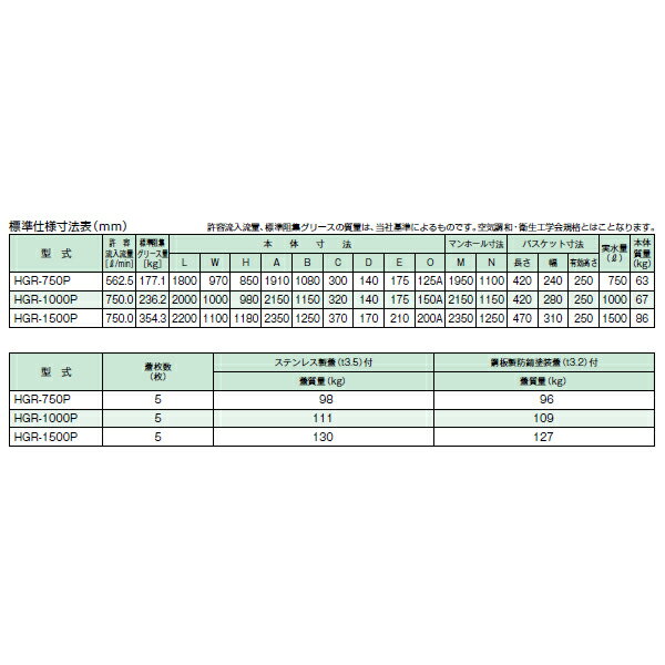 ●ホーコス 【HGR-1500P(鋼板製防錆塗装蓋)】FRP製グリース阻集器 許容流入流量750(L/min) 受注約2週〔IE〕