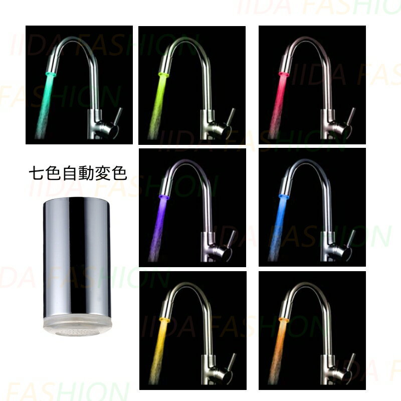 吐水口先端部 キッチン蛇口吐水口 流し台 洗面所 水力発電 混合水栓 交換自分で 吐水口金具 RGB LED 七色自動変色 水栓吐水口 水流発電 節水 湯水混合水栓吐水口 バスルーム 洗面ボール 混合蛇口吐水口 温度センサー付 水栓部品20mm/24MM変換アダプタ付