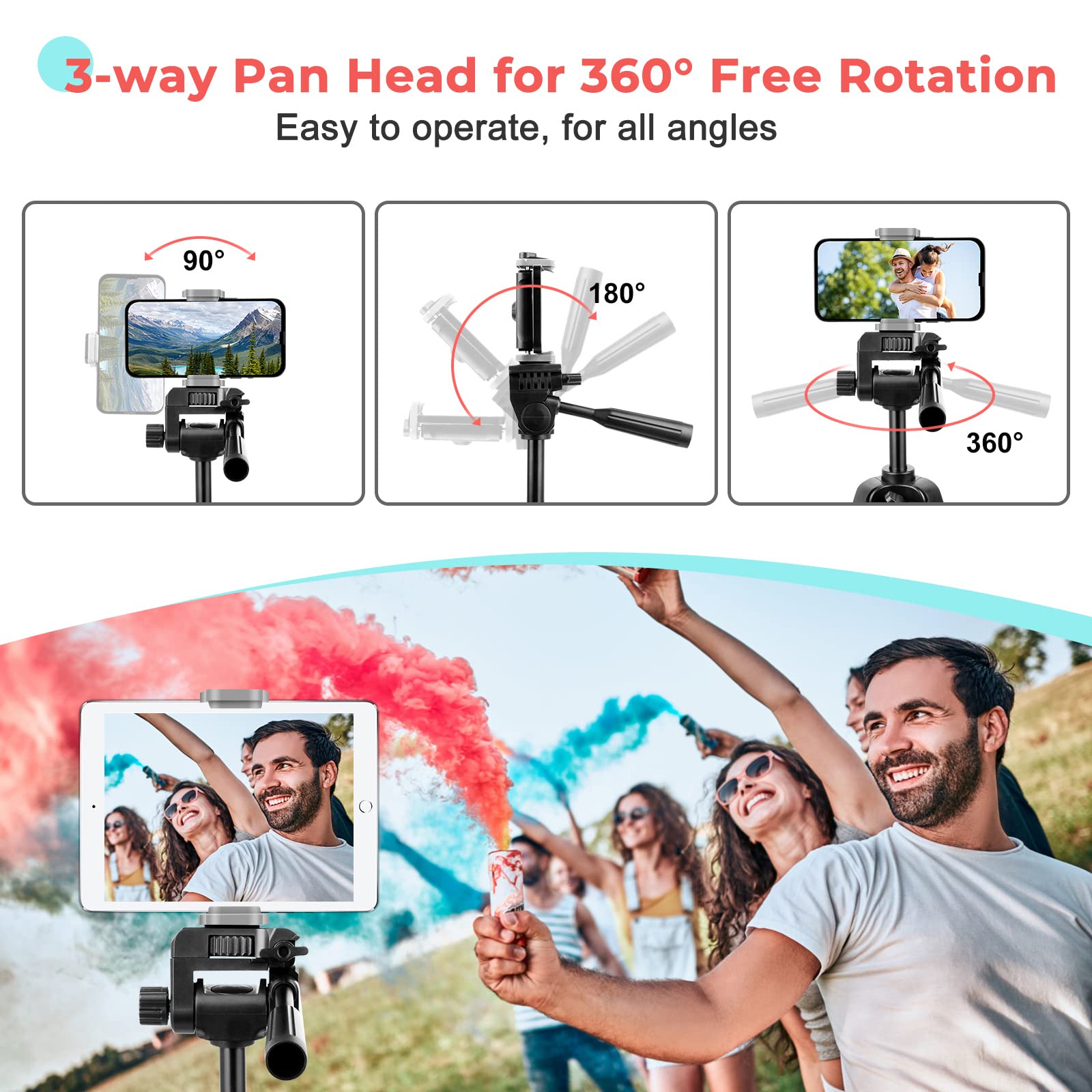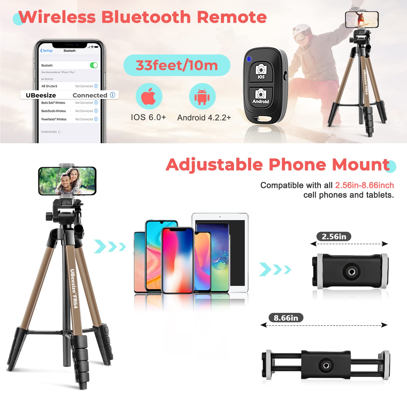 【送料無料】UBeesize 163cm三脚 スマホ/カメラ三脚/タブレット三脚/iPad三脚 Bluetoothリモコン ビデオカメラ 一眼フレ 3WAY雲台 さんきゃく スタンド軽量 iPhone/Android/スマホ全機種適用(長163cm) ブラック 適格請求書発行可