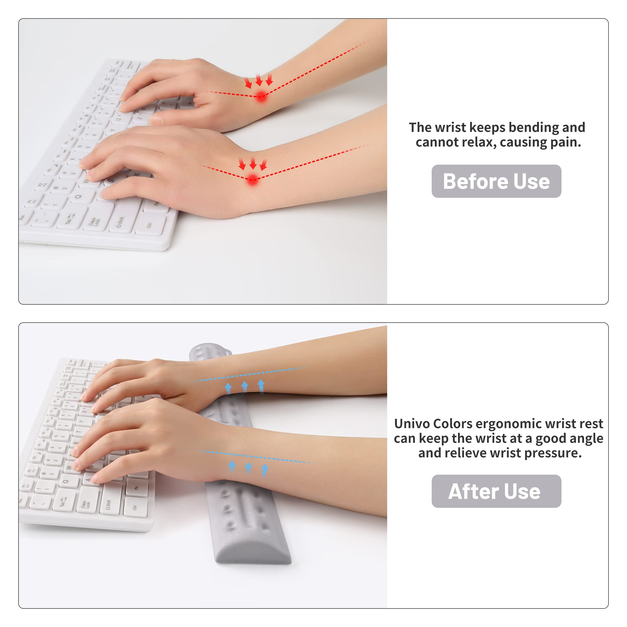【送料無料】UnivoColors キーボードリストレスト 疲労低減 柔らかい素材 ストレス解放 マッサージホール付き 手首置き 通気性 あり 肌に刺激なし 人間工学デザイン 滑り止め(グレー)