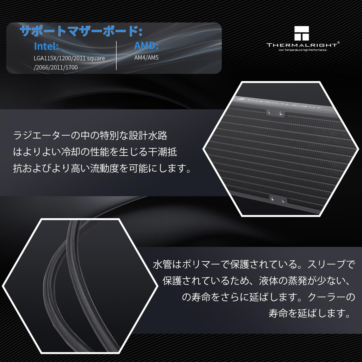【送料無料】Thermalright Frozen Edge 240 Black PWMファン付きCPUウォータークーラー、ポンプ速度は3300RPMです、S-FDBベアリング、AMD AM4 / AM5、インテルLGA1150 / 1155 / 1200 / 1700 / 2011(FE240 Black)