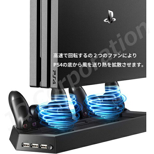 PS4 縦置きスタンド 初期型対応 冷却ファン クーリングファン 【宅配便発送】プレステーション4 プレステ4 用 コントローラー 充電スタンド 2台同時充電 USBポート 放熱対策 ソフト収納 シンプル スタンド 縦置き 簡単 ソニー SONY プレイステーション 省スペース
